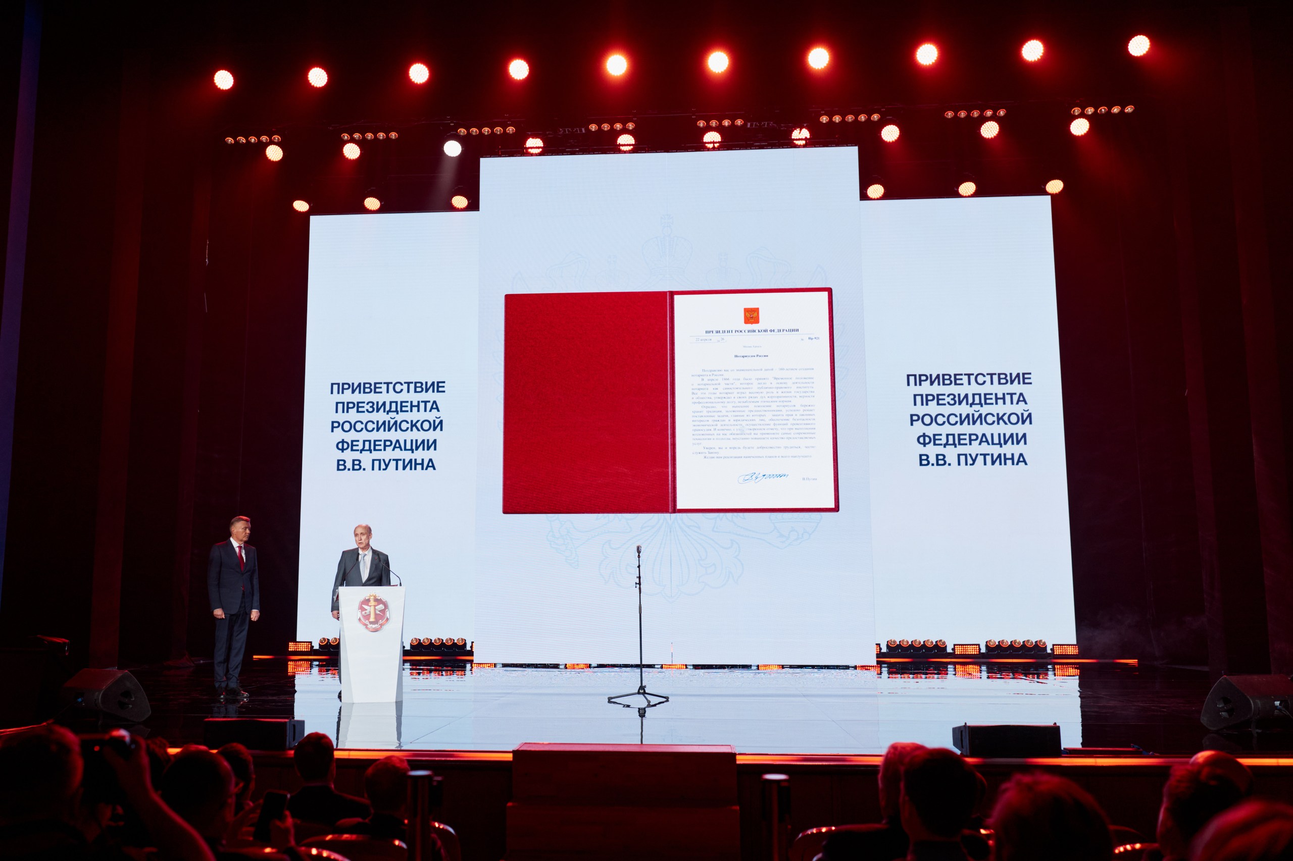 В своем поздравлении со 160-летием российского нотариата Президент РФ Владимир Путин отметил весомую роль нотариата в жизни государства и общества, верность представителей нотариального сообщества профессиональному долгу и незыблемым этическим нормам.